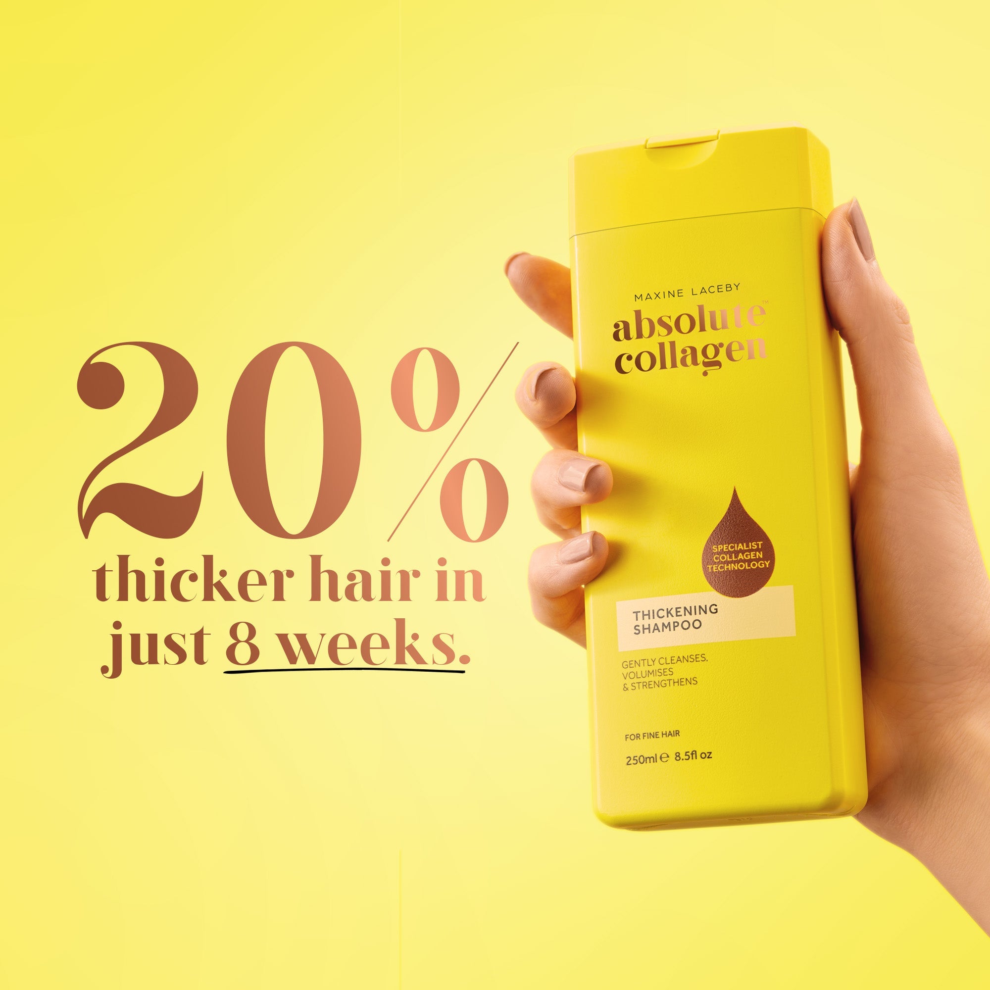 Introducing the UK???s first ever unique collagen complex formula shampoo, expertly formulated to tackle fine, thin hair right from the root.